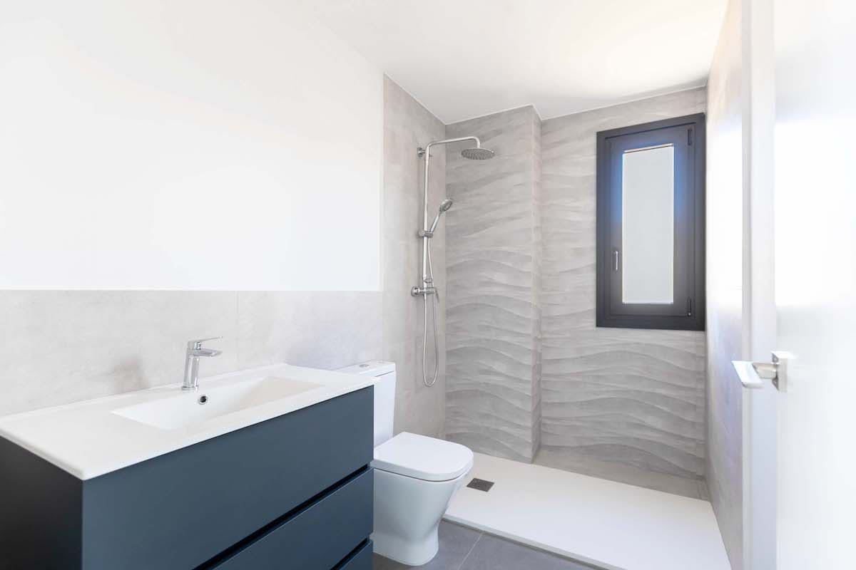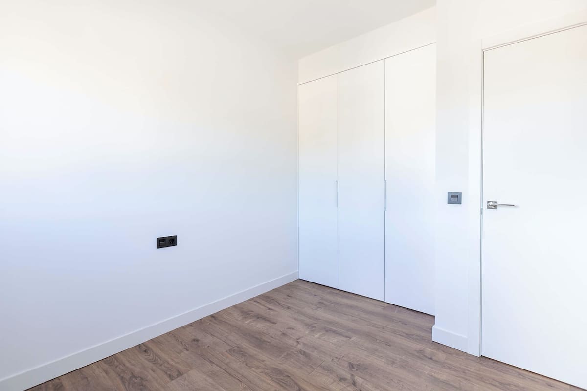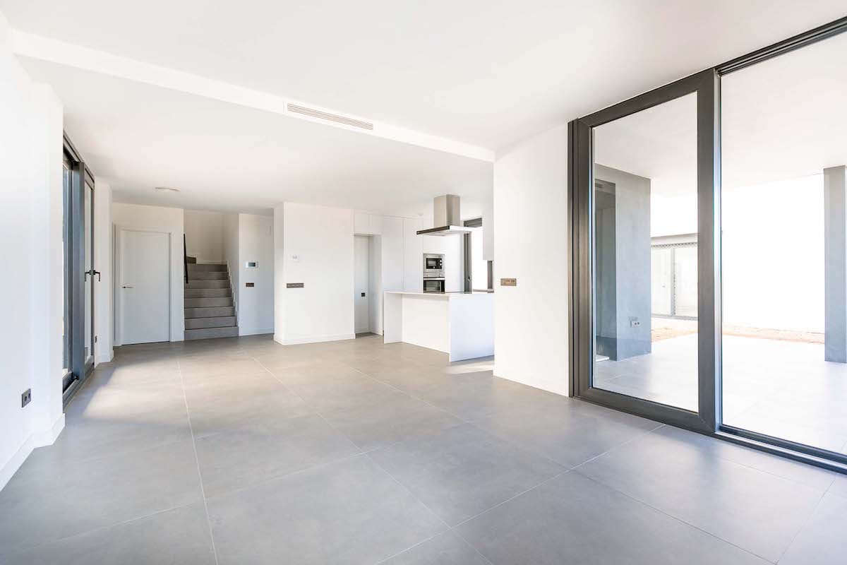 Cada vivienda se organiza en dos plantas. En la planta baja se ubica la zona de día: un amplio salón-comedor-cocina conectado directamente con una gran terraza cubierta y la piscina, además de un dormitorio de invitados, baño y trastero. La planta primera concentra la zona de noche, con tres dormitorios. El principal cuenta con vestidor, baño en suite y terraza privada, mientras que los otros dos dormitorios disponen de armarios empotrados y comparten un baño.
